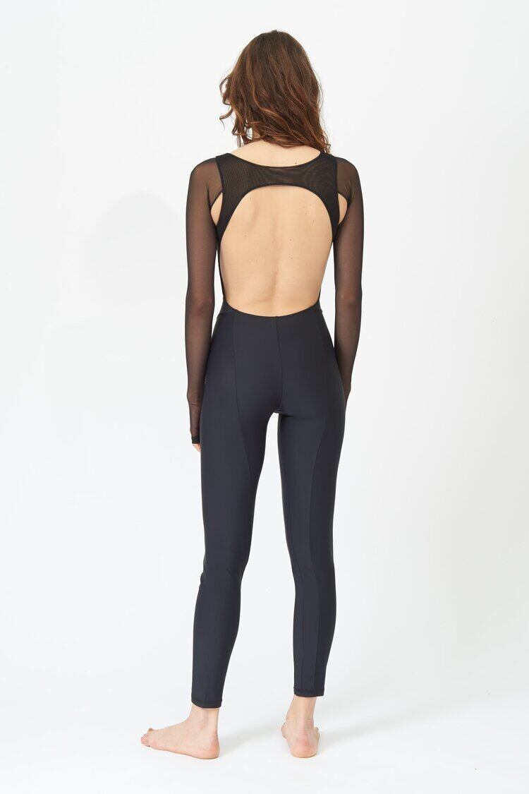 自然な体の曲線を引き立てる透明なチュールインサートと縫い目の位置が特徴の、背中を露出するキャットスーツ。透け感のあるセミ・グローブ・スリーブで腕を自由に動かせます。また、通気性・速乾性に優れており、体の形をサポートする2WAYストレッチライクラ生地が筋肉疲労を和らげ、体をしっかりサポートする多機能なボディスーツです。