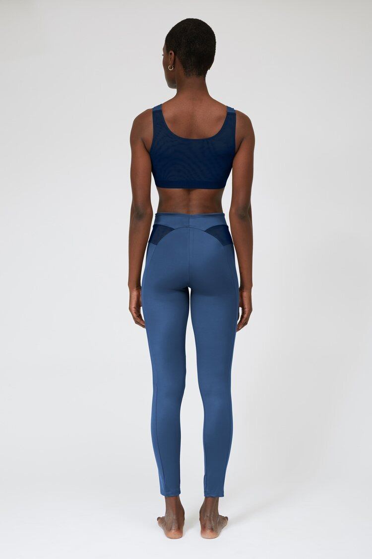 ハイネックタイプのスポーツブラ。縦に入ったビスチェの切り替えデザインと特徴的な総チュールの裏地が、優れたサポート力とリフトアップ効果を発揮し、伸縮性のあるアンダーバンドがしっかりと胸を包み込みます。背面は透け感があり、爽やかさをプラス。このトップスはヨガやランニングなど、昼間の重ね着アイテムとして最適です。昼間の活動から夜のイベントまで、どんな場面にも合わせることができます。
